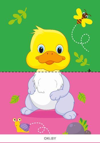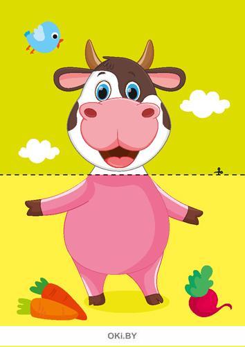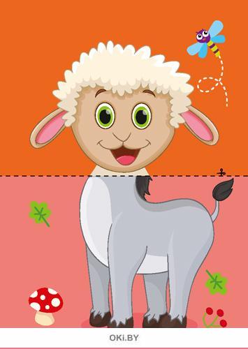 Начать игру лучше со знакомства с обитателями дома и фермы. Взрослый комбинирует части картинки и вместе с ребенком называет и описывает зверюшку.
